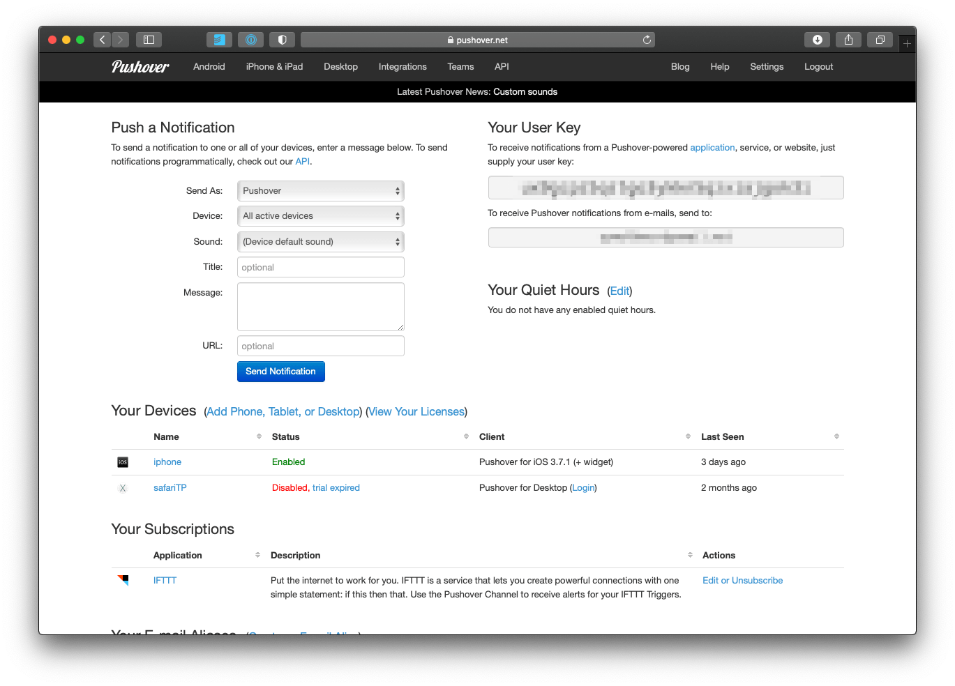 You will need to create a Pushover account and add your devices if you haven't done so already.